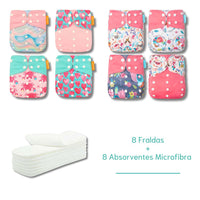 Kit com 8 Fraldas Ecológicas + 8 Absorventes de Microfibra – Ajustáveis e Reutilizáveis